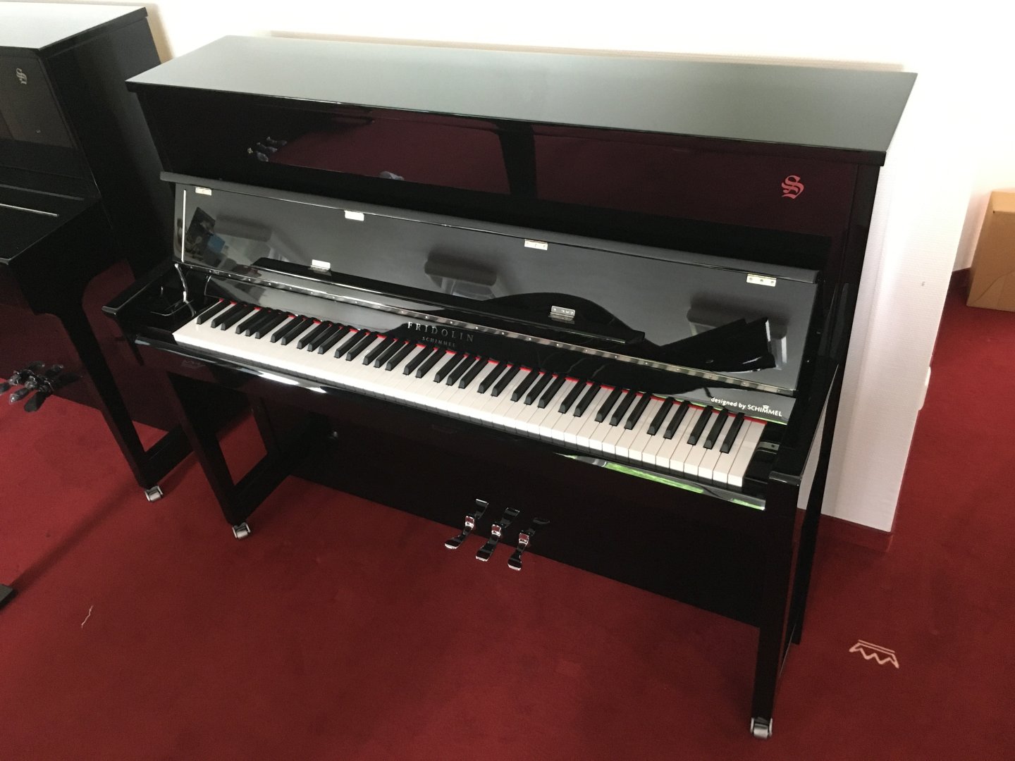 Nur für kurze Zeit - exklusives ANGEBOT – neues Schimmel Klavier F 116 Tradition in schwarz poliert chrom